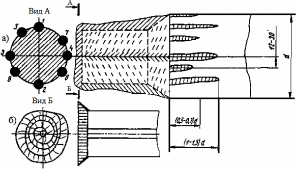 Трещины стержней, расположенные на выступающей из сердечника части, устраняют сваркой, если ее глубина не более ¼ толщины стержня. Если трещина более глубокая, в этом месте стержень разрезают и удаляют,