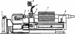 Львовским филиалом ЦКБ Союзэнергоремонт разработана установка для нанесения покрытий на валы диаметром до 250 мм. Ремонтируемый ротор 7 (рис. 8.37) одним концом вала зажимается в патрон 2, а другой опирается на регулируемую роликовую опору 8.Рис. 8.37 профиль поверхности вала, подготовленной к напылению:h – глубина (0,7 – 0,8 мм); t – шаг (1,6 – 2,0 мм)