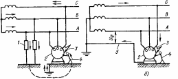 Рис.3.80. Заземление электроприемников:в сети с изолированной нейтралью(а),в сети с заземленной нейтралью(б)