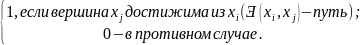 Определение. Пусть дан граф G = (XG, PG). Матрицей достижимости называется матрица Т(G)[n x n], где n – мощность множества вершин, с элементами tij, которые определяются следующим условием: