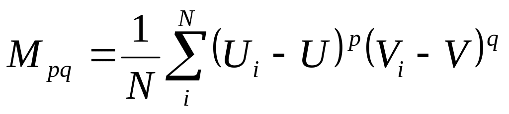где Ui и Vi – координаты i-ой точки изображения, а U и V – их средние значения по множеству из N точек.