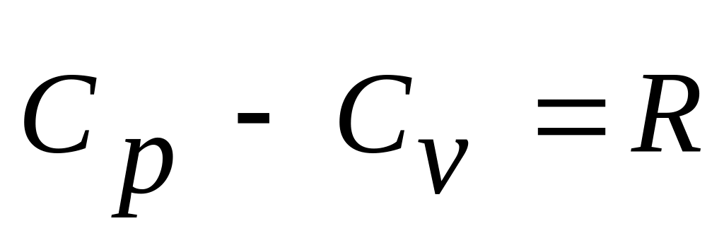 56. Залежність між ізобарною та ізохорною теплоємностями визначають за формулою Майєра, яка має вигляд: