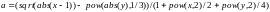 b=1+abc(y-x)+pow(y-x,2)/2+pow(abs(y-x),3)/3;