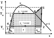 Термічний коефіцієнт корисної дії характеризує досконалість ідеальної ПТУ і являє собою відношення корисно використаної теплоти в ПТУ (q1-q2) до теплоти підведеної (q1).