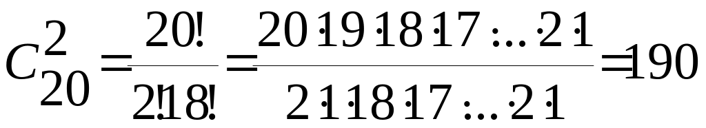 Пример 1.8. Сколько есть способов для выбора двух деталей из ящика, содержащего 20 деталей?