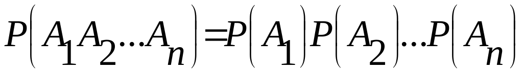 Следствие теоремы умножения. Вероятность совместного появления нескольких событий, независимых в совокупности, равна произведению вероятностей этих событий: