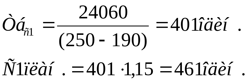 Наприклад, розподілені постійні витрати на виріб С склали 24060 грн., який планується замінити виробом С1. Ціна виробу С1 – 250 грн., змінні витрати 190 грн. Запланований випуску продукції повинен перевищити поріг, рентабельності на 15% (можна приймати від 15% до 30%)