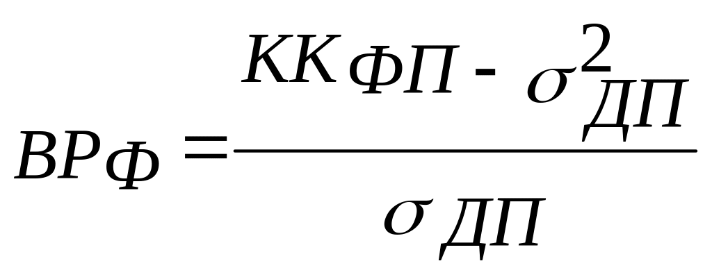 ККФП — коефіцієнт кореляції коливань прибутковості розглянутого фінансового інструмента й прибутковості портфеля (рівня його ризику), що відображає характер їх коваріації;