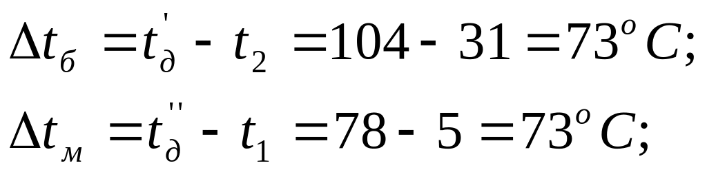 где Δtб , Δtм – большая и меньшая разность температур, оС;