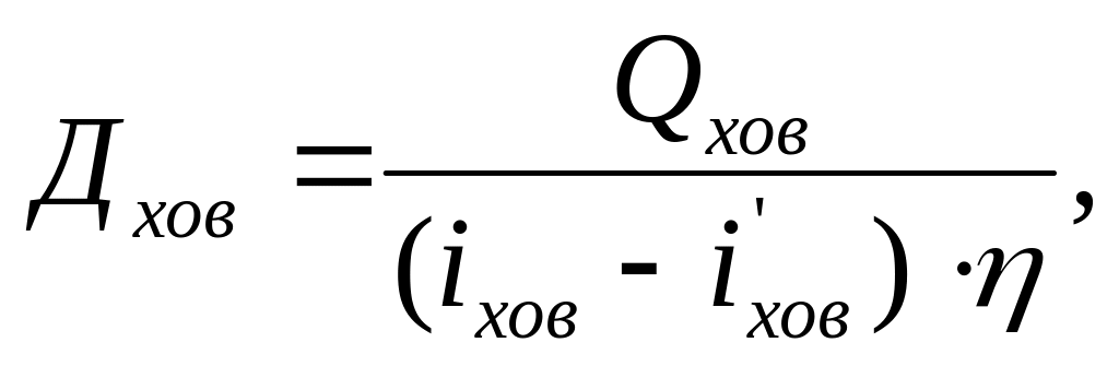 где Qхов - тепловая нагрузка подогревателя химочищенной воды, МВт;