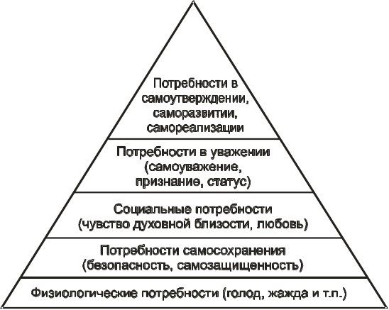 Человеческие потребности были ранжированы А. Маслоу в 1943 году и представлены в виде пятиуровневой иерархии (рис. 9.1).