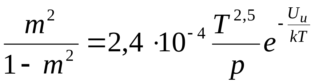 Степень ионизации, т. е. отношение числа ионизированных молекул Nи к общему числу N в данном объеме газа, может быть вычислена по формуле Саха: