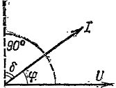 Векторная диаграмма тока и напряжения в диэлектрике с потерями