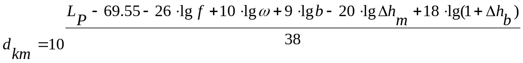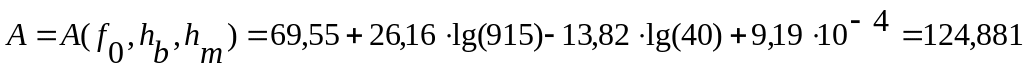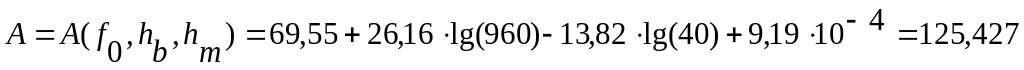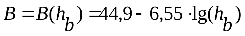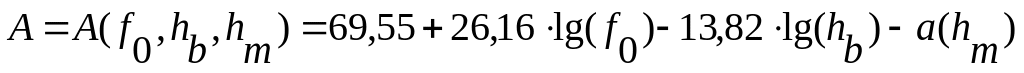 Радиочастота несущей fo, МГц, высота антенны базовой станции hb, м, и высота антенны подвижной станции hm, м; величины A, B, C и D выражаются соответственно следующим образом: