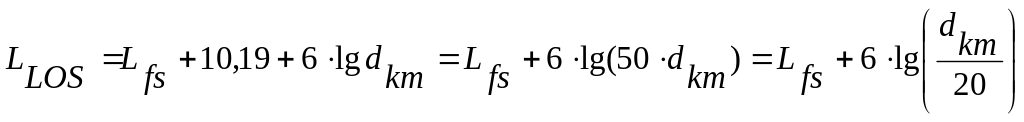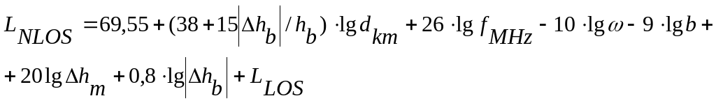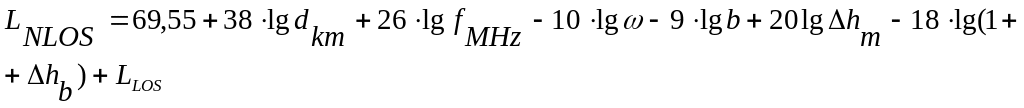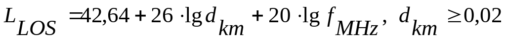В модели WIM различают два случая LOS (прямая видимость) и NLOS (non-line-of-sight, т.е. в случае непрямой видимости). В случае LOS, если на прямой распространения сигнала от передатчика и приемника нет заграждений, то WIM-модель описывается уравнением: