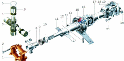 1-пружна муфта; 2,12,21- болти; 3- хрестовина; 4,9- сальники; 5- стопорне кільце; 6- підшипник хрестовини; 7,20- гайки; 8,19- фланці пружної муфти та ведучої шестерні головної передачі; 10- обойма сальника;
