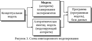 Имитационное математическое моделирование - это моделирование, выполняемое на ЭВМ, в котором центральную роль играет алгоритмическая модель, строящаяся на основе некоторой концептуальной. Общая схема имитационного моделирования показана на рисунке 3.