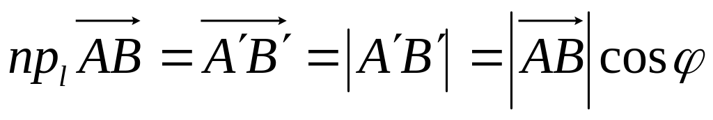 Теорема 1. Проекция вектора на ось равна длине вектора , умноженной на косинус угла между вектором и осью , т. е.