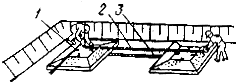 1 - осевая риска; 2 - измерение между осями рулеткой; 3 - то же, между фундаментами