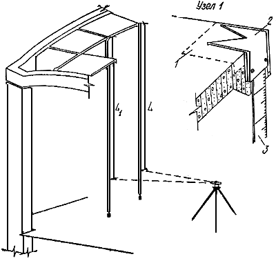 Геодезический контроль включает определение действительного планового, высотного и относительно вертикали положений конструкций как на стадии временного закрепления конструкций (операционный контроль), так и после окончательного их закрепления (приемочный контроль).