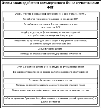 активное взаимодействие представителей банка и центральной корпорации формируемой ФПГ с руководителями предприятий, включаемых в ее состав;