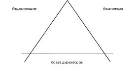 Три основных участника – это менеджеры, директора и акционеры. Механизм их взаимодействия между собой представляет так называемый "треугольник корпоративного управления" (рис. 6).