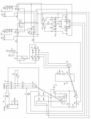 Схема электрическая принципиальная лабораторной установки приведена на рис.1. Исследуемый двигатель М2 получает питание от ЭМУ, состоящего из электромашинного усилителя поперечного поля М1 и приводного асинхронного двигателя М4, сопряженных на общем валу и в общем корпусе. В качестве нагрузочной машины используется двигатель постоянного тока М3. Нагрузка SA5 и регулируется резистором RP6. Резисторы RР3-RР5 и переключатели SA3,SA4 служат для изменения настройки регулятора тока и скорости.
