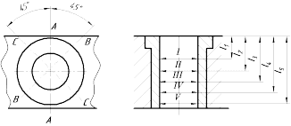 l1 = 15 мм; l2 = 45 мм; l3 = 75 мм; l4 = 100 мм; l5 = 135 мм