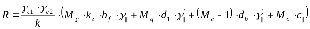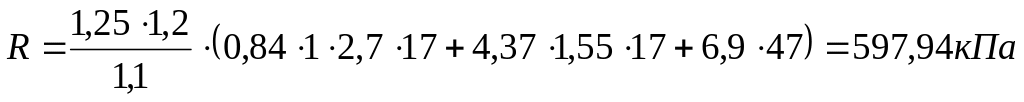 Уточняем расчетное сопротивление грунта с учетом принятых размеров фундамента: