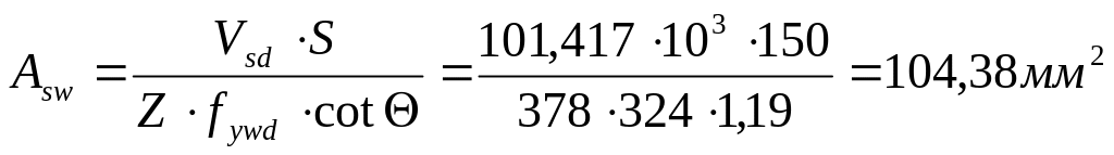 Принимаем 2 стержня диаметром 10мм класса S500 (Asw=157 мм2) c шагом S=150мм.