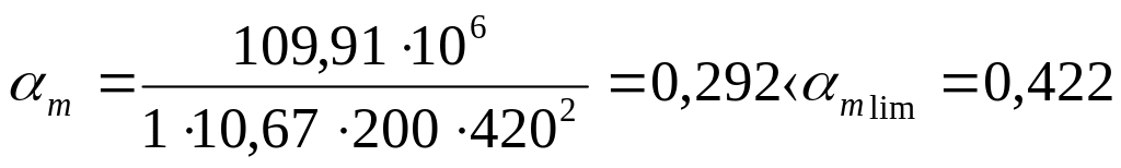 Проверку достаточности принятых размеров ригеля выполняем по значению изгибающего момента в пролете. Рабочая высота сечения