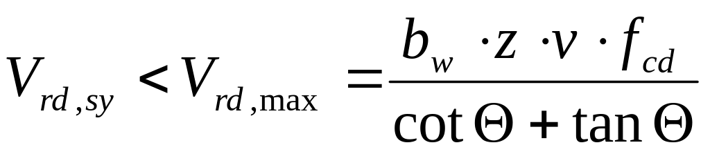 Условие не выполняется, тогда используя метод ферменной аналогии, поперечное армирование определим из условий и