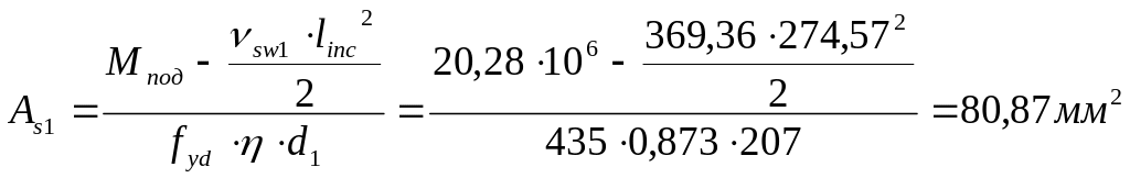 Требуемая площадь сечения растянутой арматуры в подрезке определяется по формуле: