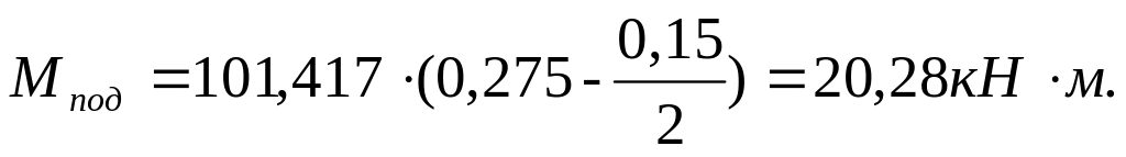Вычислим изгибающий момент в нормальном сечении, расположенном в уменьшенной по высоте части ригеля: