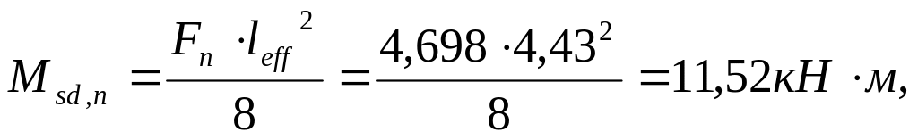 Максимальный изгибающий момент от полной расчётной нагрузки: