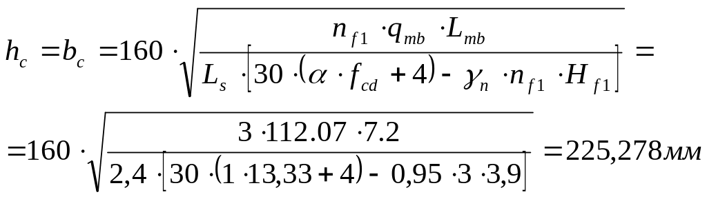 Сторона квадратного сечения колонны определяется следующим образом: