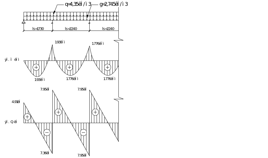 Расчетная схема плиты и эпюры внутренних усилий представлены на рисунке 4.