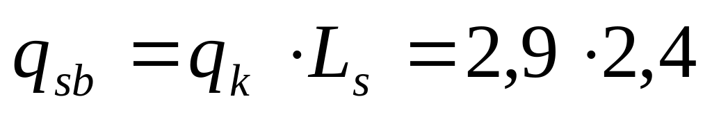Определение погонной нагрузки в килоньютонах на метр на второстепенную балку сводим в таблицу 5.