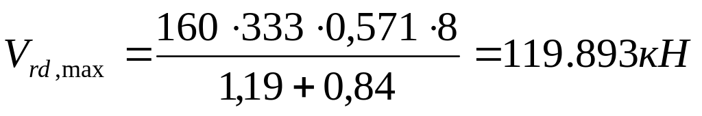 Определим значение поперечной силы, воспринимаемой сечением без поперечного армирования:
