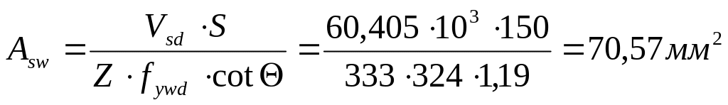 Принимаем два стержня диаметром 8мм класса S500 (Asw=101 мм2) c шагом S=150мм.