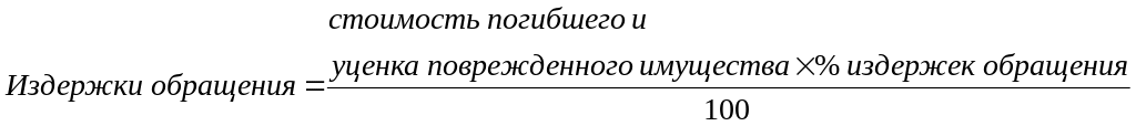ущерб = стоимости погибшего и уценки поврежденного имущества - торговые надбавки + издержки обращения + расходы по спасению и приведению имущества в порядок.