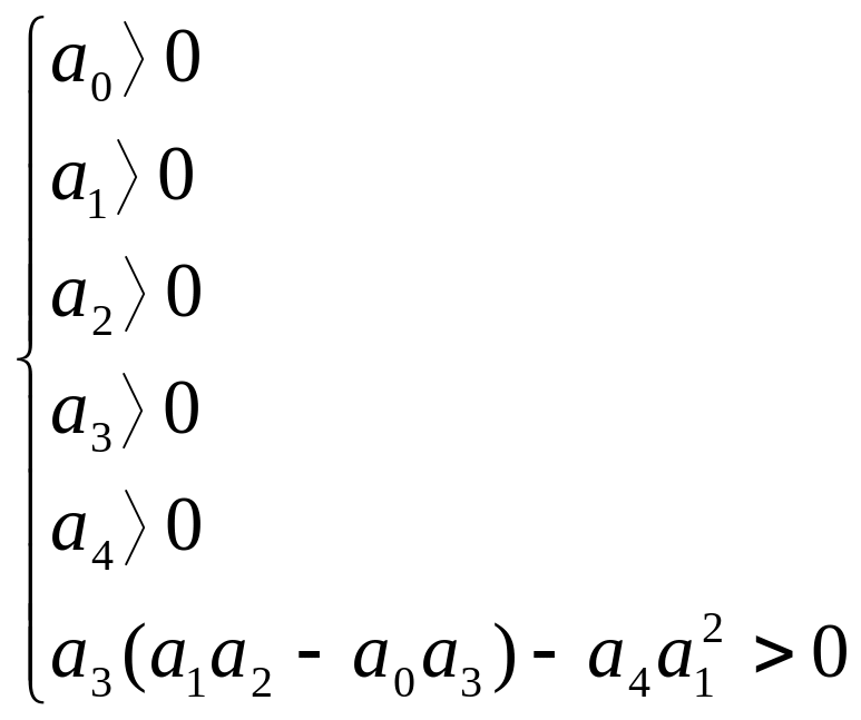 Запишем условие устойчивости САУ 4-го порядка в соответствии с критерием Гурвица (табл.1):