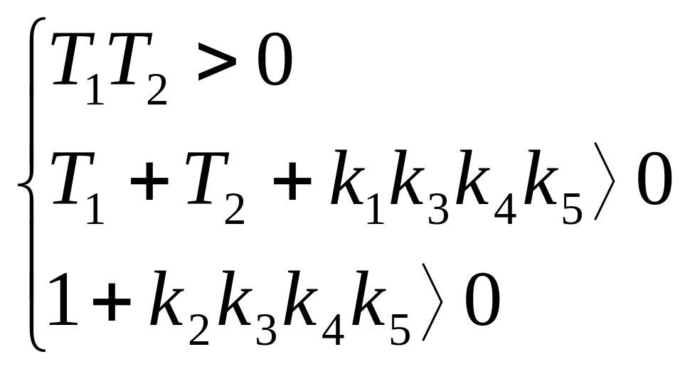 Ответ: условие устойчивости замкнутой САУ в соответствии с критерием Гурвица имеет вид .
