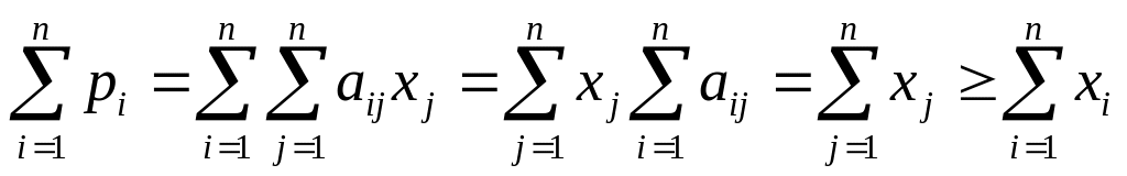 Последнее неравенство справедливо только в случае, когда рi=xi, i=1,2,…n, т.е. у всех торгующих стран выручка от внешней и внутренней торговли должна совпадать с национальным доходом.