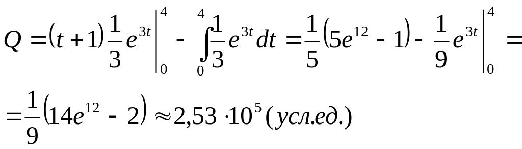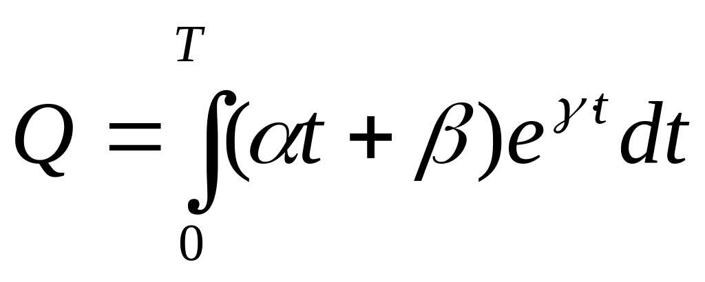 Экономический смысл определенного интеграла: выражает объем произведенной продукции при известной функции производительности труда.