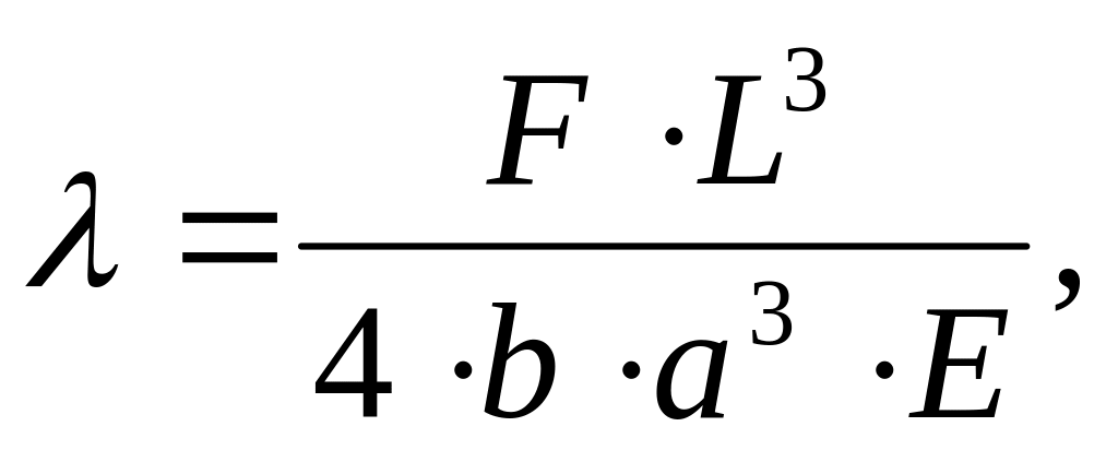 Өзектің ортасы алатын айналым λ, иілу оғы деп аталады. Ол жүктеме ұлғайған сайын үлкен болады, және одан басқа, өзектің формасы мен өлшемдеріне және оның серпімділік модуліне тәуелді. Материалдардың қарсыласу теориясында дәлелденгендей, L ұзындығы, b ені және а қалыңдығы бар өзекке ортасында F күш салынса (сурет 5.2), онда иілу оғын формула бойынша табады