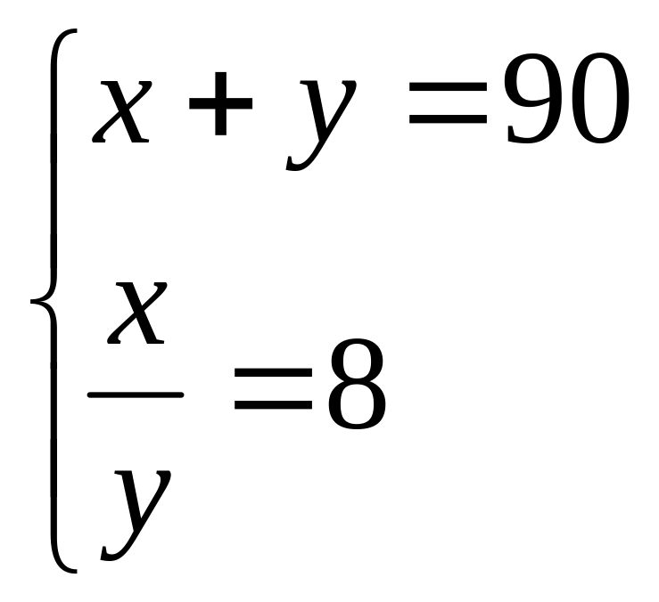 2-masala. Ikki sonning yig`indisi 90 ga, nisbati esa 8 ga teng bo`lsa, bu sonlarni toping.