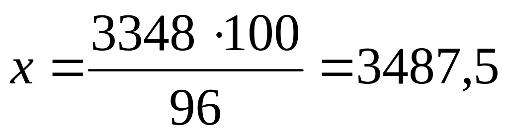 uchun 3348:96=x:100 proporsiyaga ega bo`lamiz, buni yechib