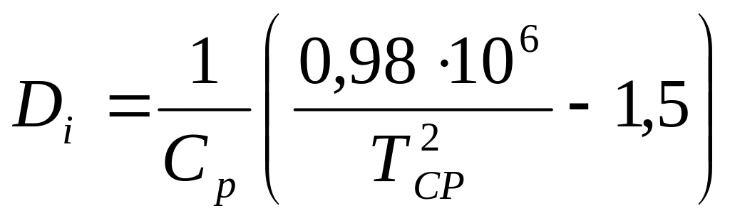 6) коэффициент Джоуля-Томсона Di (К/МПа) вычисляется по формуле