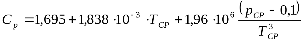 5) удельная теплоемкость газа Ср (кДж/(кг·К)) определяется по формуле